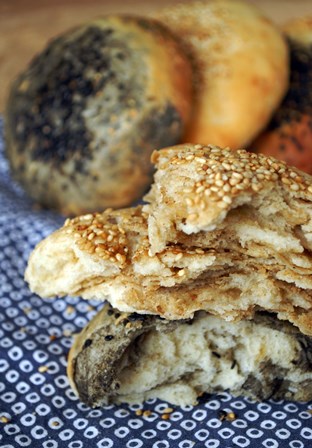 Aujourd’hui j’avais déjà prévu de faire du pain sans pétrissage. Mais je voulais aussi faire des biscuits au sésame. Et puis j’ai croisé ta recette et j’ai improvisé quelque chose de très proche, également sans pétrissage, avec des quantité au pifomètre, une seule étape de pliage, et une garniture de graines de pavot mixées puis mélangées avec du miel. Eh bien je suis conquise, merci Cléa !