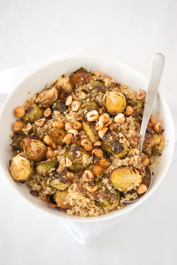 Salade de quinoa aux choux de Bruxelles rôtis et aux noisettes
